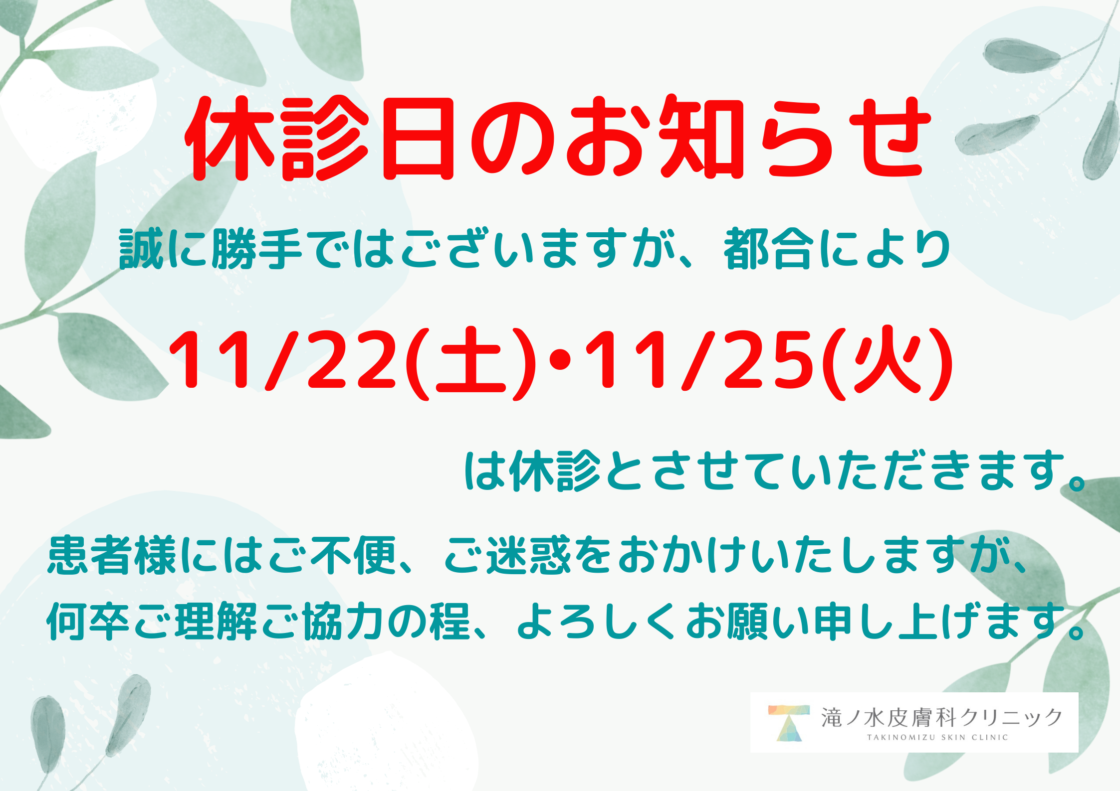 11月臨時休診について