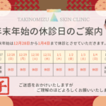 年内は12月28日(火)で診療終了となり、年明けは1月5日(水)より診療再開いたします。